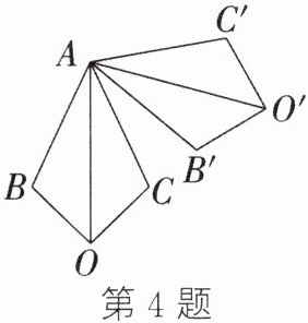 4. (2023·张家界)如图,AO为∠BAC的平分线,且∠BAC= 50°,将四边形ABOC绕点A按逆时针方向旋转后,得到四边形AB'O'C',且∠OAC'= 100°,则四边形ABOC旋转的角度是______.