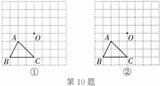 (1)在图①中画出△ABC关于点O成中心对称的△A'B'C'(点A,B,C的对应点分别为A',B',C');