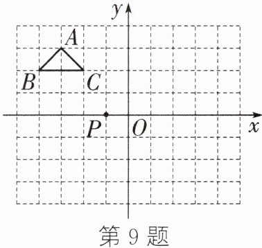 9. 如图,在建立了平面直角坐标系的方格纸中,每个小方格都是边长为1个单位长度的小正方形,△ABC的顶点均在格点上,点P的坐标为(-1,0).按要求作图并回答问题: