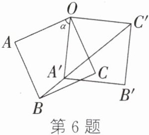 6. (2022·温岭期中)如图,正方形OABC的边长为2,将正方形OABC绕点O按逆时针方向旋转$\alpha(0°<\alpha<180°)$得到正方形OA'B'C',连接BC',则当点A'恰好落在线段BC'上时,BC'的长是______.