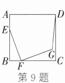 9. 如图,在正方形ABCD中,AB= 4,点E在边AB上,点F在边BC上,且BF= 1.连接EF,将线段EF绕点F按顺时针方向旋转90°得到线段GF,连接DG,则DG长的最小值为 ( )
