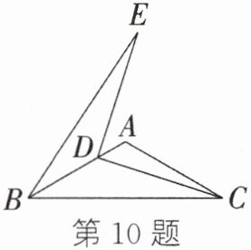 10. (2023·温岭期中)如图,在△ABC中,∠BAC= 120°,AB= AC= 6,D为边AB上一动点(不与点B重合),连接CD,将线段CD绕点D按逆时针方向旋转90°得到线段ED,连接BE,则$S_{\triangle BDE}$的最大值为______.