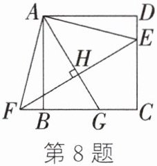 8. 如图,点E在正方形ABCD的边CD上.将△ADE绕点A按顺时针方向旋转90°到△ABF的位置,连接EF,过点A作AG⊥EF于点H,交BC于点G.若BG= 3,CG= 2,则CE的长为______.
