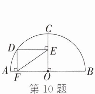 10. 如图,半圆 O 的直径$AB= 8$,半径$OC\perp AB$,D 为$\overset{\frown}{AC}$上一点,$DE\perp OC$,$DF\perp OA$,垂足分别为 E,F,连接 EF,则 EF 的长为______.