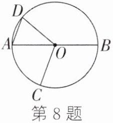 8. 如图,AB 是$\odot O$的直径,点 C,D 在$\odot O$上,且点 C,D 在 AB 的异侧,连接 AD,OD,OC.若$\angle AOC= 70^{\circ}$,且$AD// OC$,则$\angle AOD$的度数为( )
