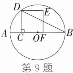 9. 如图,AB 为$\odot O$的直径,$CD\perp AB$于点 C,四边形 CDEF 是正方形,连接 BD.若$OC= 3$,$OF= 1$,则 BD 的长为( )