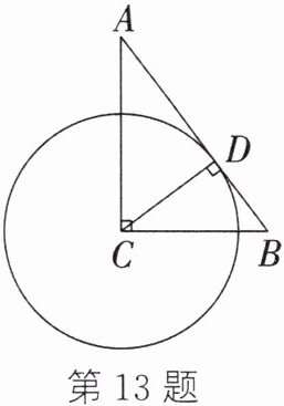 13. 如图,在Rt△ABC中,∠ACB=90°,AC=4,BC=3,CD⊥AB于点D,以点C为圆心,2.4为半径作⊙C,试判断点D与⊙C的位置关系.