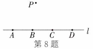 8. (2023·江西)如图,点A,B,C,D均在直线l上,点P在直线l外,则经过其中任意三个点,最多可画出圆的个数为( )
