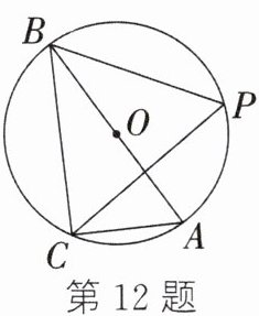 12. 如图,△ABC是⊙O的内接三角形,AB是⊙O的直径,P为⊙O上的动点,且∠BPC=60°,⊙O的半径为6,则点P到AC距离的最大值为______.