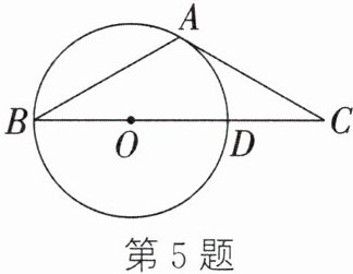 5. (2022·椒江期末)如图,在△ABC中,AB= AC,$\angle BAC= 120^\circ,$⊙O经过点A和点B且与边BC相交于点D.