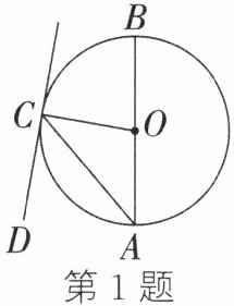 1. (2023·重庆B卷)如图,AB为⊙O的直径,直线CD与⊙O相切于点C,连接AC,OC.若$\angle ACD= 50^\circ,则\angle BAC的度数为( )A. 30^\circB. 40^\circC. 50^\circD. 60^\circ$