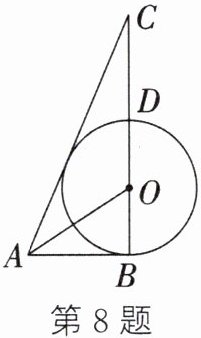 8. 如图,在△ABC中,AO平分∠BAC交BC于点O,以点O为圆心、OB为半径的⊙O与AB相切于点B,与BC相交于点D.