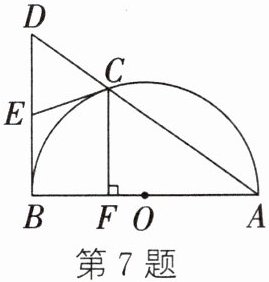 7. 如图,AB为半圆O的直径,弦AC的延长线与过点B的切线交于点D,E为BD的中点,连接CE.