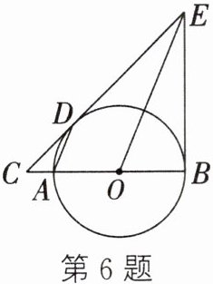6. 如图,AB为⊙O的直径,过圆上一点D作⊙O的切线CD交BA的延长线于点C,连接AD,过点O作OE//AD,交CD于点E,连接BE.直线BE与⊙O相切吗?请判断并说明理由.