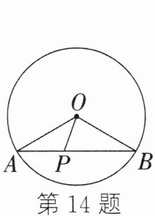 14. 如图,⊙O的半径是2,AB是⊙O的弦,P是弦AB上的动点,且1≤OP≤2,则弦AB所对的圆周角的度数为 ( )