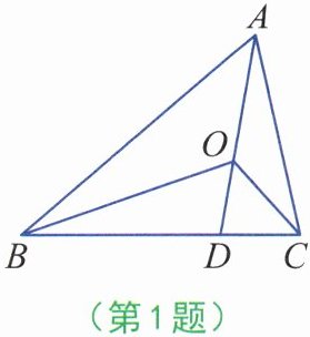 1. 如图,在△ABC中,点D在BC上,点O在AD上,如果S△AOB= 3,S△BOD= 2,S△ACO= 1,那么S△COD等于( )。