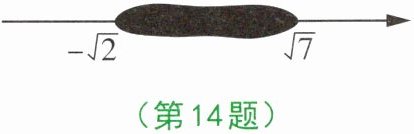 14. 如图,在数轴上被墨汁覆盖的整数部分恰好是关于$x的不等式组\begin{cases} 3(x + m) > 2x + 3 \\ x \leq \frac{x - 2}{2} + n \end{cases} $的所有整数解,求$m$,$n$的取值范围。