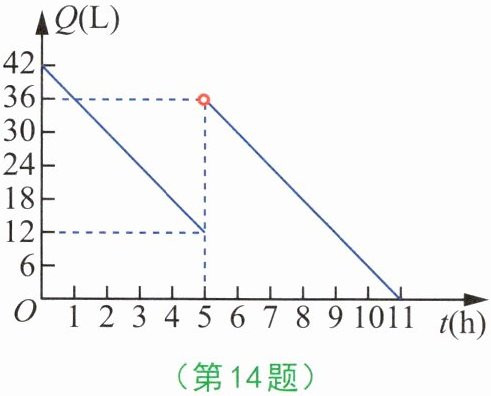 14. 某机动车出发前油箱内有油42L,行驶若干小时后,途中在加油站加油若干升。油箱中余油量$Q(L)与行驶时间t(h)$之间的函数关系如图所示。根据图象回答问题: