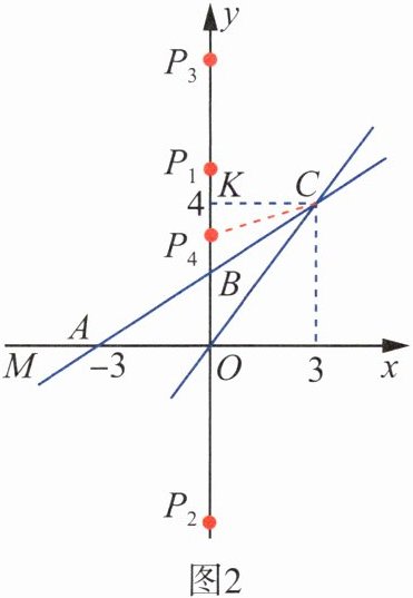 (3)如图2,当$OP= OC$时,$OC= \sqrt{3^2+4^2}= 5$,