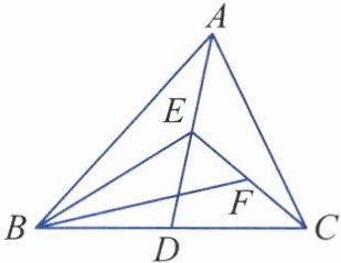 ∵点E是AD的中点,∴S△ABE= $\frac{1}{2}$S△ABD,S△ACE= $\frac{1}{2}$S△ACD。∴S△ABE+S△ACE= $\frac{1}{2}$S△ABC。∴S△BCE= $\frac{1}{2}$S△ABC。∵点F是CE的中点,∴S△BEF= $\frac{1}{2}$S△BCE= $\frac{1}{4}$S△ABC。∴S△ABC= 4S△BEF= 4。