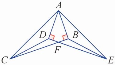 例3 如图,已知Rt△ABC≌Rt△ADE,∠ABC= ∠ADE= 90°,BC与DE相交于点F,连结CD,EB。