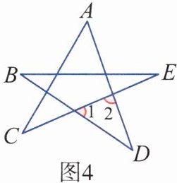 (1)解:如图4,根据三角形外角性质,得∠A+∠C=∠2,∠B+∠E=∠1,