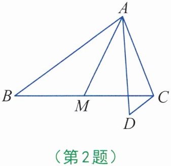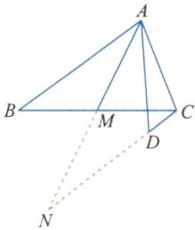 2. 如图,AM是△ABC的中线,∠DAM= ∠BAM,CD//AB。求证:AB= AD+CD。