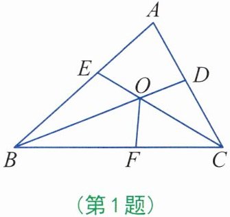 1. 如图,在△ABC中,已知∠A= 60°,∠ABC的平分线BD与∠ACB的平分线CE相交于点O,∠BOC的平分线交BC于点F,则下列说法中正确的是______。