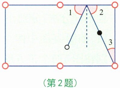 2. 数学在我们的生活中无处不在,就连小小的台球桌上都有数学问题。如图,∠1= ∠2,若∠3= 25°,为了使白球反弹后能将黑球直接撞入底袋中,则击打白球时,必须保证∠1为( )。