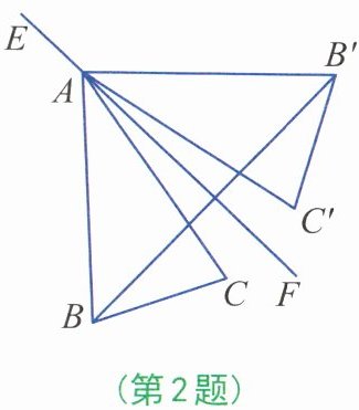 2. 【梧州】如图,在△ABC中,AB= AC,∠C= 70°,△AB'C'与△ABC关于直线EF对称,∠CAF= 10°,连结BB',则∠ABB'的度数是( )。