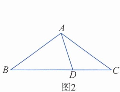 ② 如图2,△ABC中,AB=AC,直线AD过顶点A,交BC于D。若AB=BD,AD=CD,则∠B=∠C,∠DAC=∠C,∠BAD=∠BDA。