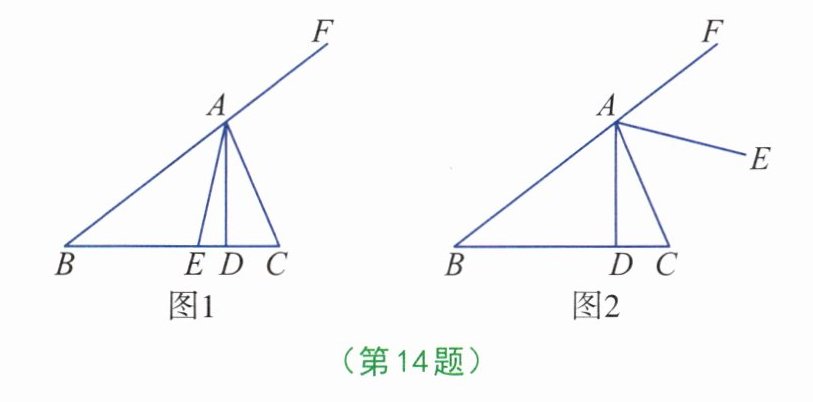 14. 如图1,在△ABC中,AD是高线,AE是∠BAC的平分线。