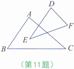 11. 如图,△ABC和△DEF有一部分重叠在一起(图中涂色部分),重叠部分的面积是△ABC面积的$\frac{2}{7}$,是△DEF面积的$\frac{1}{3}$,且△ABC与△DEF面积之和为26,则重叠部分的面积是______。