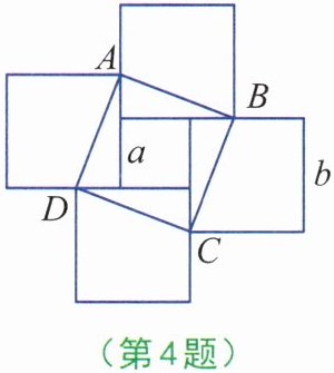 4. 如图,将一边长为a的正方形(最中间的小正方形)与四块边长为b的正方形(其中$b>a$)拼接在一起,则四边形ABCD的面积为( )。