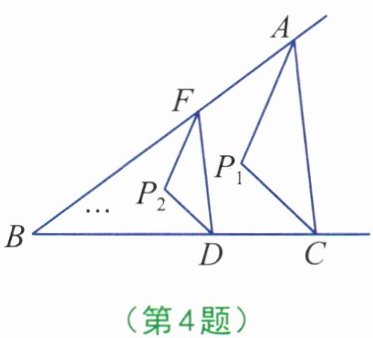 4. 如图,若∠B= 40°,A,C分别为角两边上的任意一点,连结AC,∠BAC与∠ACB的平分线交于点P1,则∠P1= ______,D,F也为角两边上的任意一点,连结DF,∠BFD与∠FDB的平分线交于点P2……按这样的规律,则∠P2023= ______。