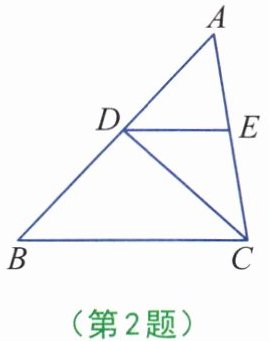 2. 【长春】如图,在△ABC中,CD平分∠ACB交AB于点D,过点D作DE//BC交AC于点E。若∠A= 54°,∠B= 48°,则∠CDE的大小为( )。