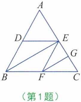 1. 【贵阳】如图,在△ABC中,有四条线段DE,BE,EF,FG,其中有一条线段是△ABC的中线,则该线段是( )。