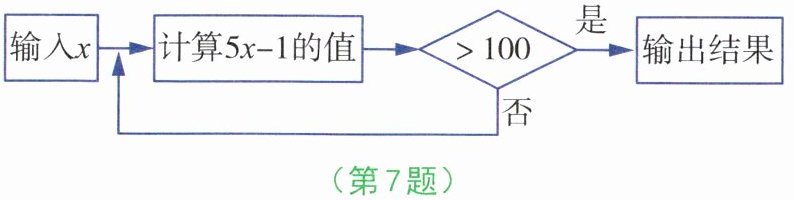 7.如图,若开始输入的$x$的值为正整数,最后输出的结果为144,则满足条件的$x$的值为______。