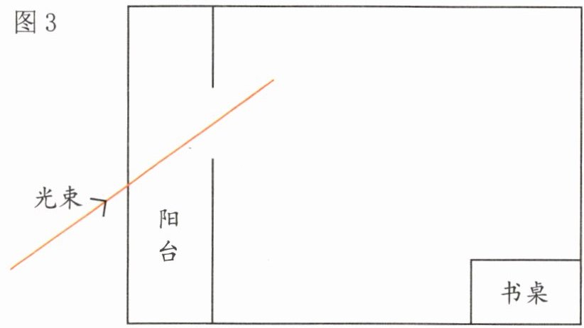 4. 小科的卧室结构如图3,当外面的光束从阳台射入时,请你想办法帮他将光束引到室内照亮书桌。