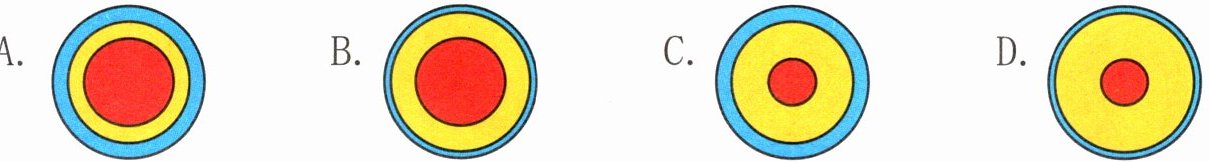 6. 用橡皮泥做一个地球内部结构模型,以下作品最接近地球真实结构的是( )。