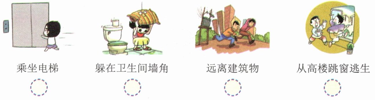 判断地震发生时下面的做法,对的画“√”,错的画“×”。