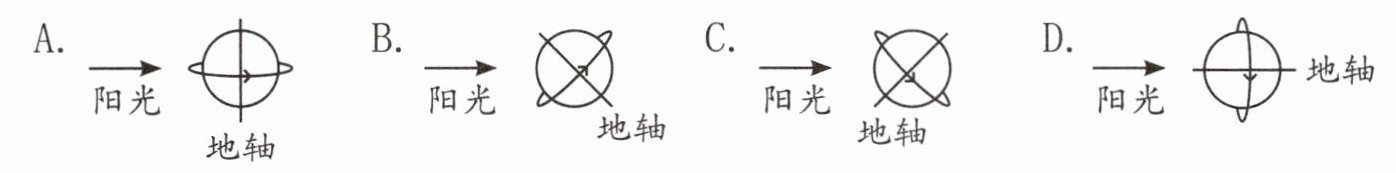 6. 下列示意图中,无法看到昼夜交替现象的是( )。