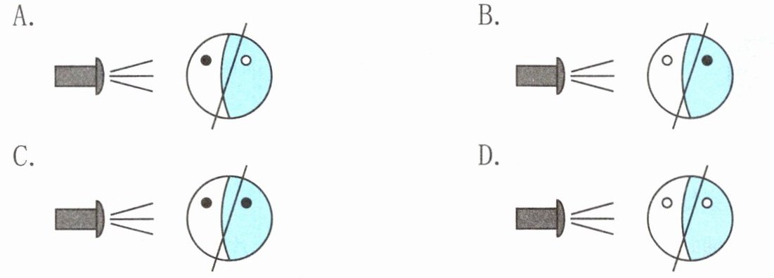 4. 在模拟昼夜交替现象的实验中,下列小圆片的亮暗情况与实际观察结果一致的是( )。