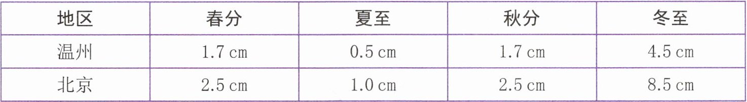 温州和北京影长的四季变化