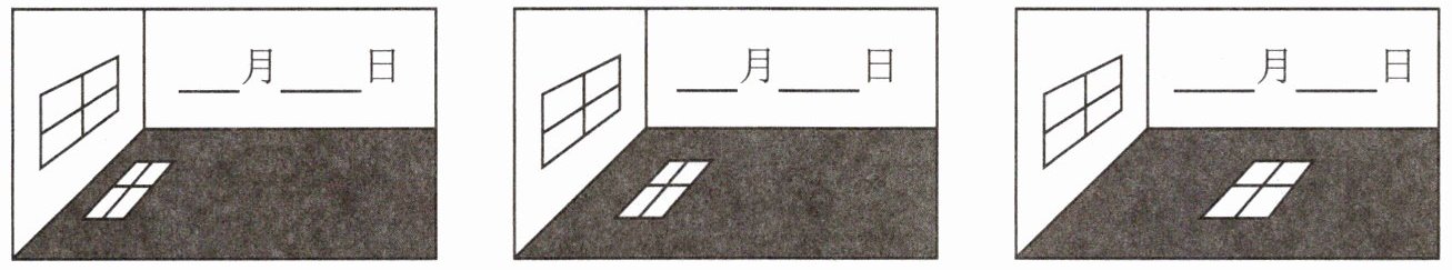 5. 下面三张图片是小科在3月23日、6月22日、12月22日正午同一时刻观察到太阳照进教室的情景,通过观察,将日期填在对应的图片上。