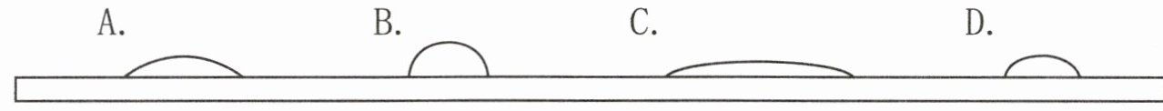 2. 小科做了水滴放大镜观察树叶。下面是玻璃片上四处水滴的侧视图,放大倍数最大的是水滴( )。