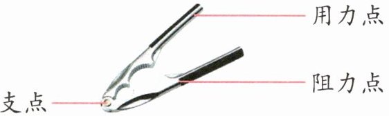 [解析:支点的位置可以是杠杆上的任意位置。支点可以在用力点和阻力点的中间,如天平、跷跷板。支点也可以在用力点和阻力点的一侧,如右图核桃夹。]