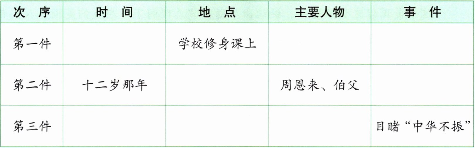 | 第二件 | 十二岁那年 | | 周恩来、伯父 | |