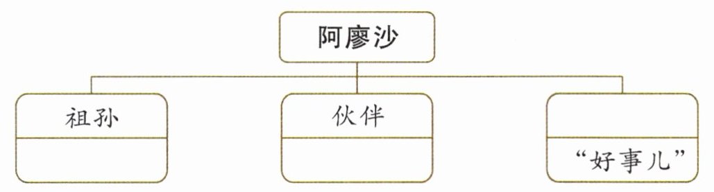 3. 用上面的方法______(填序号),以阿廖沙为中心,在下图方框内填写与他相关的人物及他们与阿廖沙之间的关系,并选择其中一个人物,简要介绍他(她)的性格特点。
