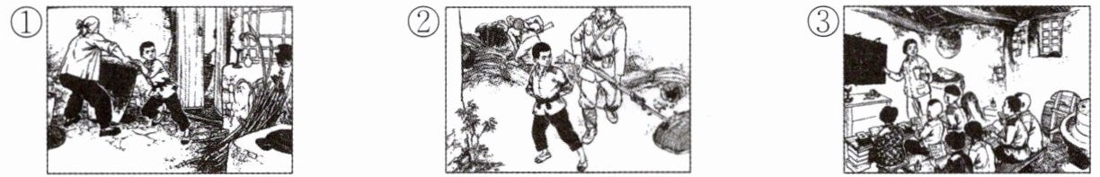 2. 《小英雄雨来》讲述了雨来成长的故事,名名从书中挑选了三个重要情节(如下图),按照时间顺序排列应该是( )→( )→( )。(填序号)